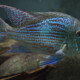 Geophagus sveni measures between 15 and 17 cm. This fish is bicolore with a predominantly rouge and bleu body. The also has rouge and bleu multiple.