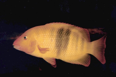 Gnathochromis permaxillaris is a fish ovipare incubateur buccal. In this species, the dominant males are polygamous and reproduce each season with several females.