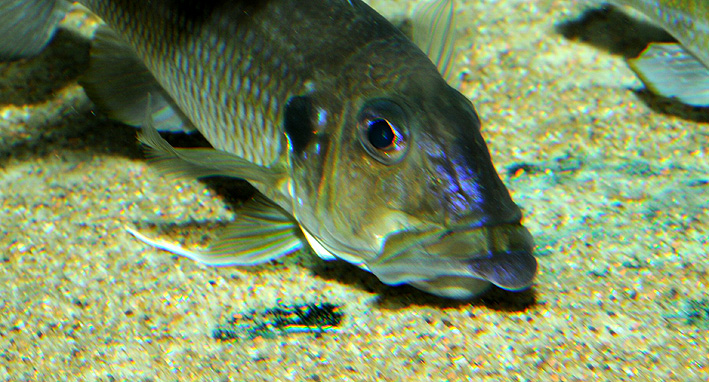 Gnathochromis permaxillaris is a fish living as a couple or in a group naturally found on the bottom. This species is omnivorous . Naturally, it tends to dig into the sand and transform its environment.