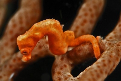 The bargibant's seahorse is a fish living as a couple or alone naturally found in the vegetation. This species is carnivorous . Measuring only a few centimeters, this small species tends to be discreet and hide in the presence of larger neighbors.