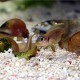 Lamprologus ocellatus naturally living in basic water, the presence of limestone rocks such as millstone or travertine will improve its environment. It is also advisable to add sand with a contribution of specific salts to stabilize the pH, to be gauged according to the hardness of the water used.Tips for feeding