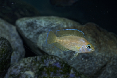 Lamprologus ocellatus is a fish living in colonies naturally found near the bottom. The members of each group are organized around a well established hierarchy. This species is omnivorous with carnivorous tendency .