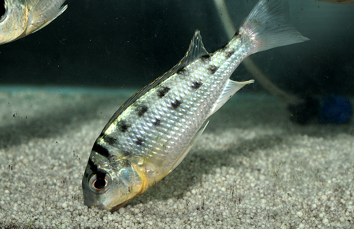 Limnotilapia dardennii is a fish living in colonies naturally found near the bottom. The members of each group are organized around a well established hierarchy. This species is omnivorous with carnivorous tendency . Naturally, it tends to dig into the sand and transform its environment.