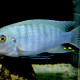 Maylandia aff. zebra "Chizumulu" measures between 12 and 13 cm. This fish is unicolore with a predominantly bleu body.