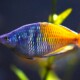 The boeseman's rainbowfish measures between 9 and 10 cm. This fish is unicolore with a predominantly orange and argent body.