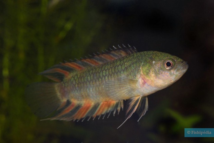 The orange ctenopoma is a fish living as a couple or in a group naturally found near the bottom. This species is omnivorous .