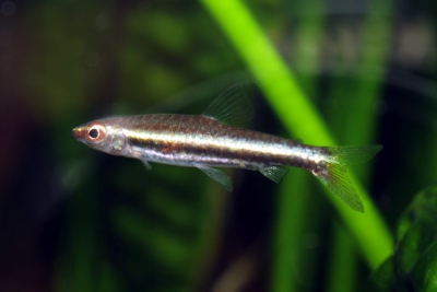 Nannostomus trifasciatus measures between 3 and 4 cm. Given its small size, this species is commonly referred to as a "dwarf" animal.