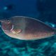 The spotted unicornfish measures between 40 and 60 cm. This fish is unicolore with a predominantly gris body.