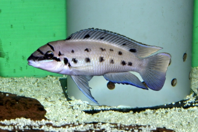 Ophthalmotilapia boops is a fish living as a couple or in a group naturally found at mid-depth and near the bottom. This species is planctophage . Naturally, it tends to dig into the sand and transform its environment.