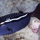 Ostracion trachys measures around 10 cm. The dominant males can however reach 12 cm. This fish is tricolore with a predominantly bleu, noir and blanc body. The also has noir circle pattern.