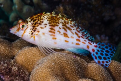 Paracirrhites forsteri, commonly known as blackside hawkfish, is a salt water fish.