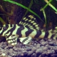 Peckoltia compta measures between 10 and 11 cm. This fish is bicolore with a predominantly jaune and noir body. The also has noir diagonal stripes.
