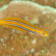 Plagiotremus rhinorhynchos measures between 10 and 12 cm. This fish is bicolore with a predominantly jaune and bleu body. The also has bleu horizontal stripes.