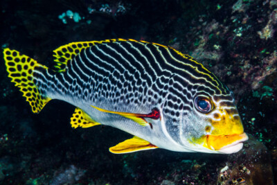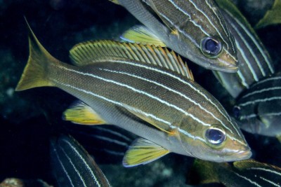 Plectorhinchus albovittatus is a fish living as a couple or alone naturally found near the bottom. This species is carnivorous .