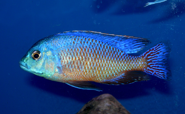 The Spindle hap is a fish living in small groups naturally found on the bottom. This species is omnivorous .