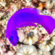 The orchid dottyback has a bright purple coloration. Laterally compressed, it has an elongated shape.