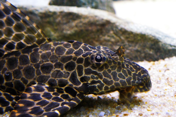 The leopard pleco prefers well oxygenated waters in current areas and rapids. It frequents fast flowing waters where the bottom is strewn with pebbles, wood or leaves carried by the current. It can be found not far from waterfalls .