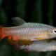 Pyrrhulina cf brevis measures around 6 cm. The females are more imposing and some specimens can reach 7 cm. This fish is bicolore with a predominantly rouge and argent body.