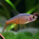 The vateria flower rasbora is a fish living in shoals naturally found at mid-depth. This species is omnivorous . Measuring only a few centimeters, this small species tends to be discreet and hide in the presence of larger neighbors.