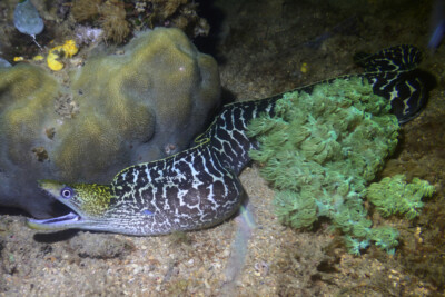 Be careful, the ribbon moray is an excellent jumper, naturally using this faculty to change its living area or to escape from predators. The aquarium must be perfectly covered to prevent him from making a deadly jump...