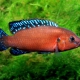 Rubricatochromis exsul measures around 8 cm. The dominant males can however reach 10 cm. This fish is unicolore with a predominantly rouge body.