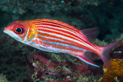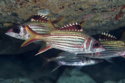 The silverspot squirrelfish is a fish living in a group or alone naturally found near the rocks. This species is carnivorous . This fish lives mainly at night. Usually, it leaves its hiding place and starts to be active once it gets dark.