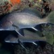 The brown meagre is a fish that lives in groups of varying sizes. It moves slowly and sometimes remains still near the bottom, cliffs, or in underwater caves.