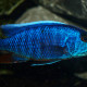 Sciaenochromis fryeri measures around 11 cm. The dominant males can however reach 12 cm. This fish is unicolore with a predominantly bleu body.