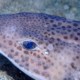 Darker spots are observed on its back. The belly is lighter than the back. The snout is short and rounded with a mouth located ventrally.