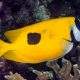 The blotched foxface measures between 18 and 20 cm. This fish is tricolore with a predominantly jaune, noir and blanc body.