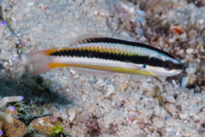 The yellow-brown wrasse is a fish living in a group or alone naturally found near the bottom. This species is carnivorous .