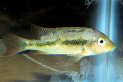 Tropheops sp. Tiger Olive is a fish ovipare incubateur buccal. In this species, the dominant males are polygamous and reproduce each season with several females.