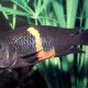 Tropheus sp. Black Pemba measures between 9 and 10 cm. This fish is bicolore with a predominantly jaune, orange and noir body.