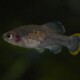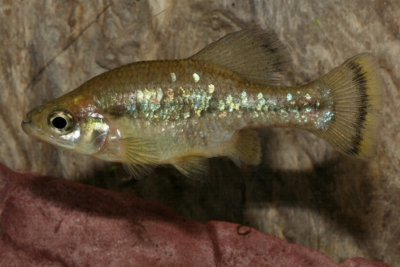 The Tequila Splitfin has a compact and robust morphology, with a streamlined body. Its coloration is subtle, ranging from gray to brown, with silver or golden reflections in males. The belly is lighter, almost white, and the body is marked with small dark spots. Its fins, especially in males, may be slightly colored with dark reflections and distinct markings.