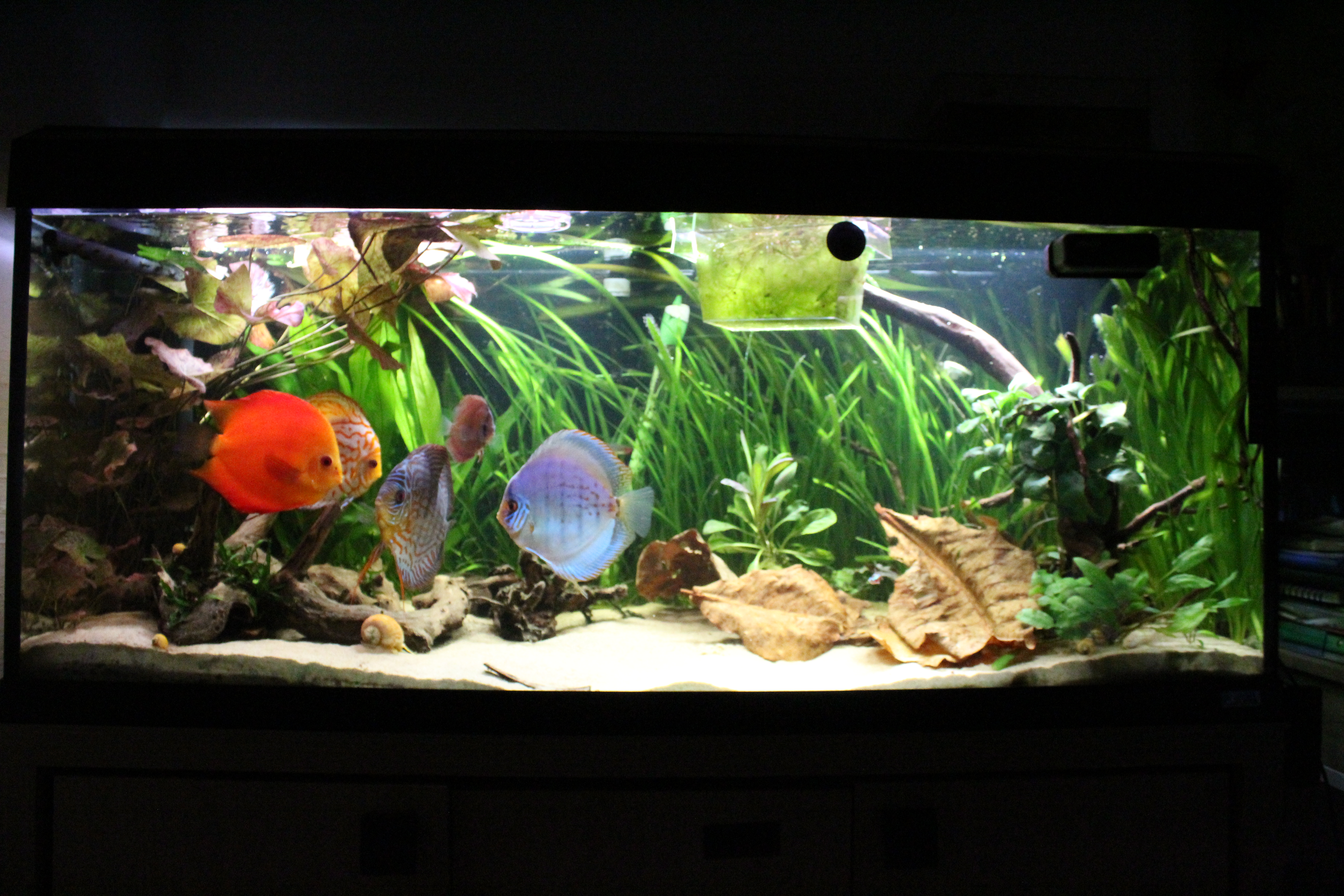 5 discus, 6 corydoras sterbai, 3 farlowella acus, 1 couple d'apistogramma macmasteri,