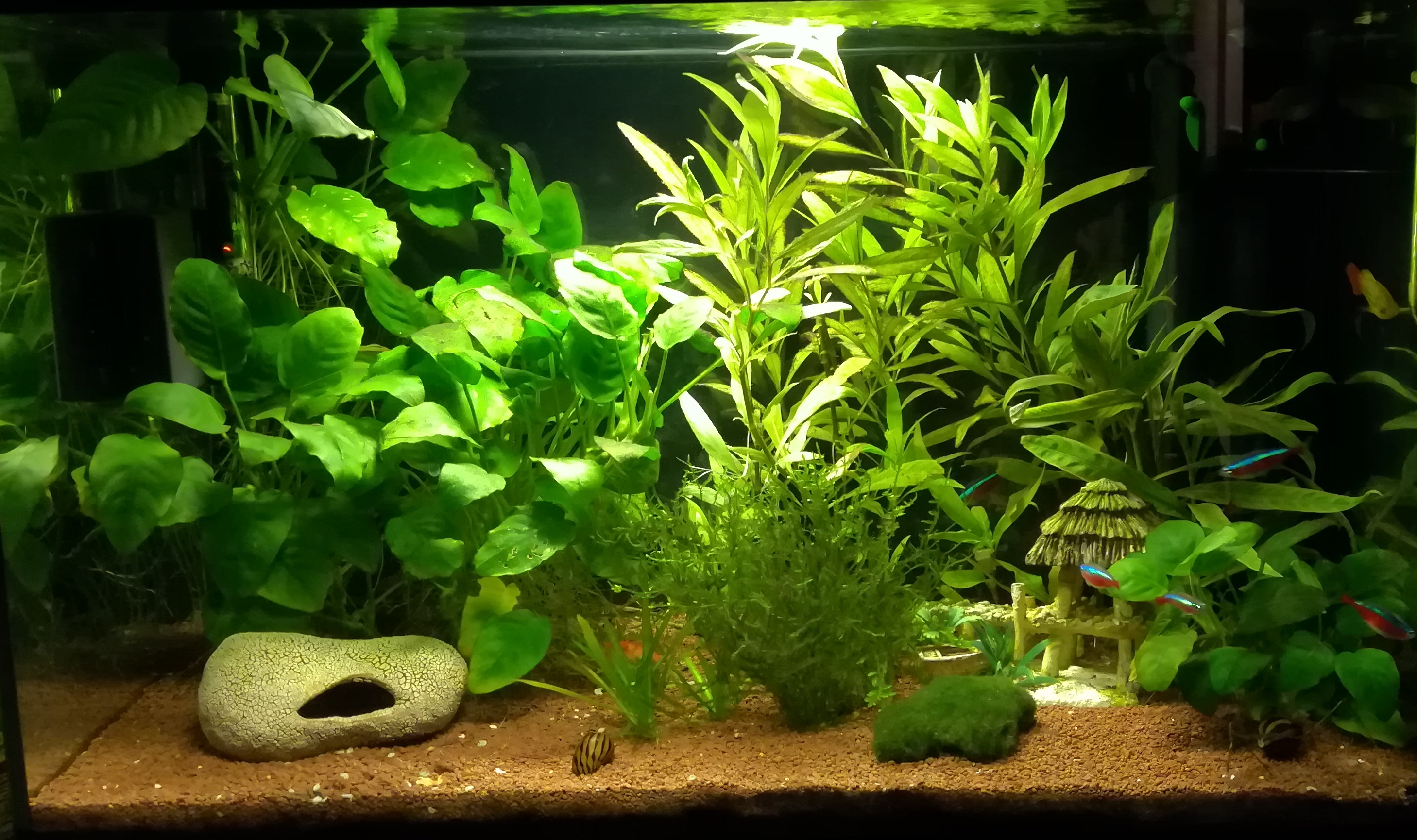 - 6 Cardinalis - 1 Platy mâle - 3 Platy femelles - 2 Neritina natalensis - 4 CPO