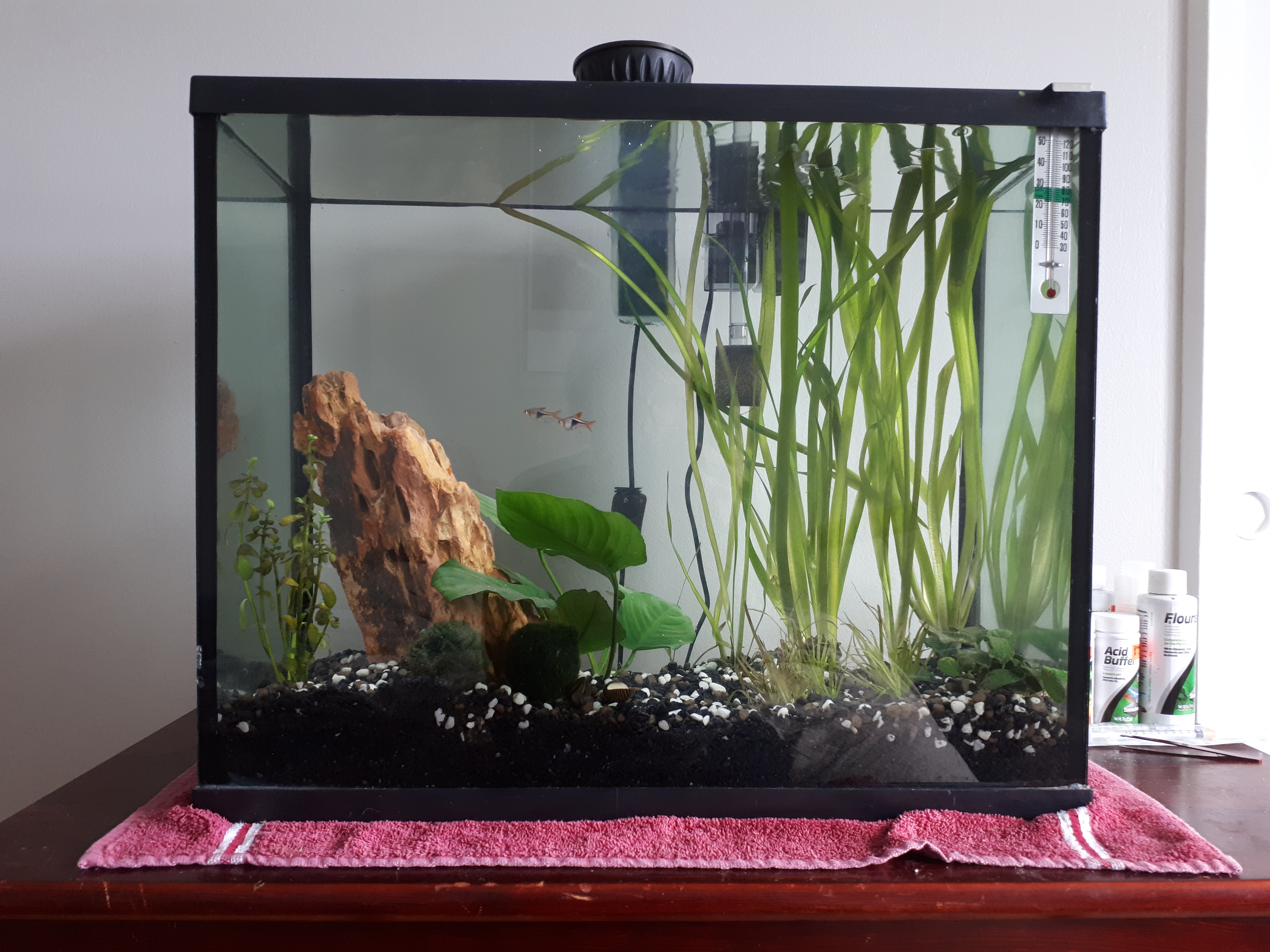 Le projet de départ était un mini aquarium de 6L planté avec 1 betta et 1 colimaçon!