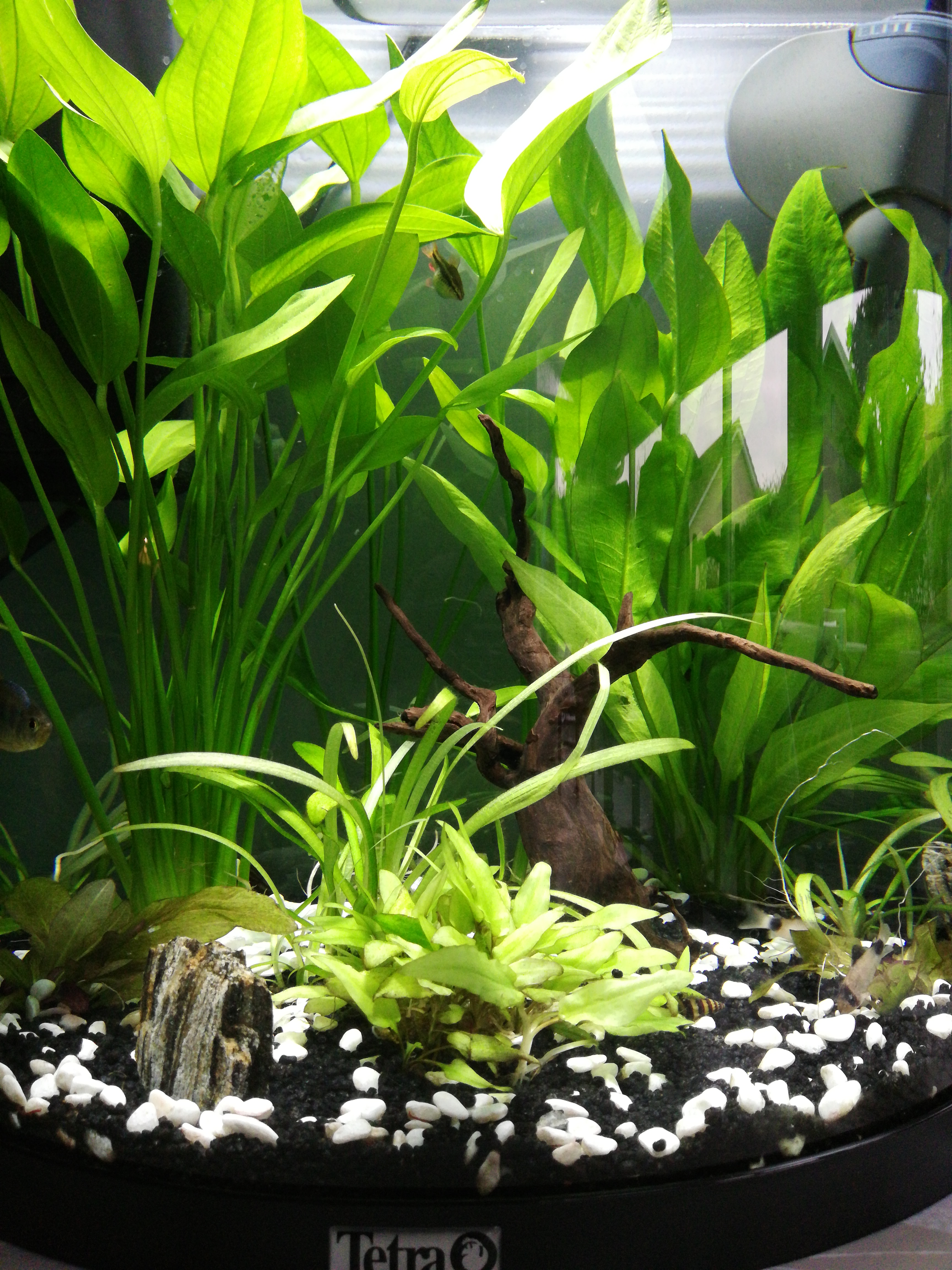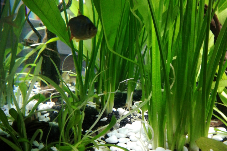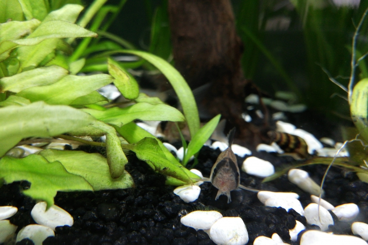 Tétra de Colombie ×2. Tetra rose. Barbus cerises ×2. Corydoras panda ×3. Ancistrus.