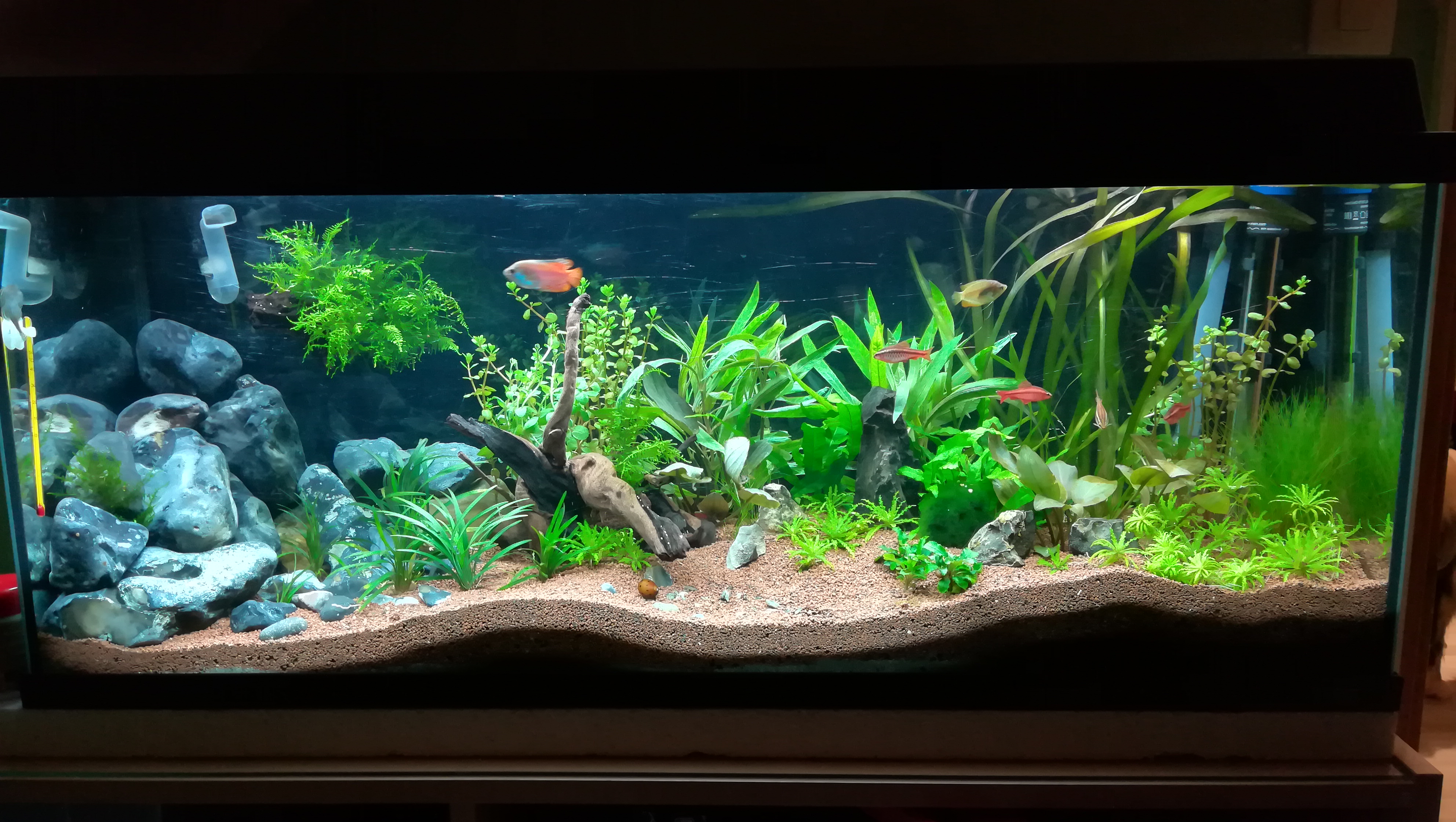 Microsorum pteropus - Lagenandra meeboldii Rot - Bucephalandra spec. "Wavy leaf" - Pogostemon helferi - Rotala rotundifolia "Orange juice" - Eleocharis acicularis - Ophiopogon japonicus nana - Mousse de Java - Hygrophila Angustifolia Red