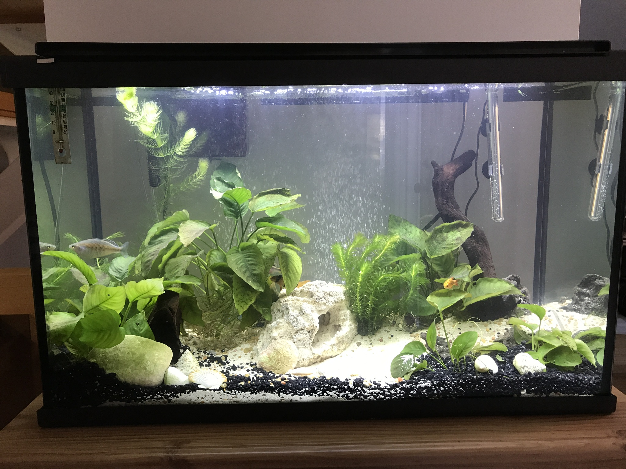 Kribensis, barbu doré, arc-en-ciel, torpille, pleco, Danio zébré, requin tricolore