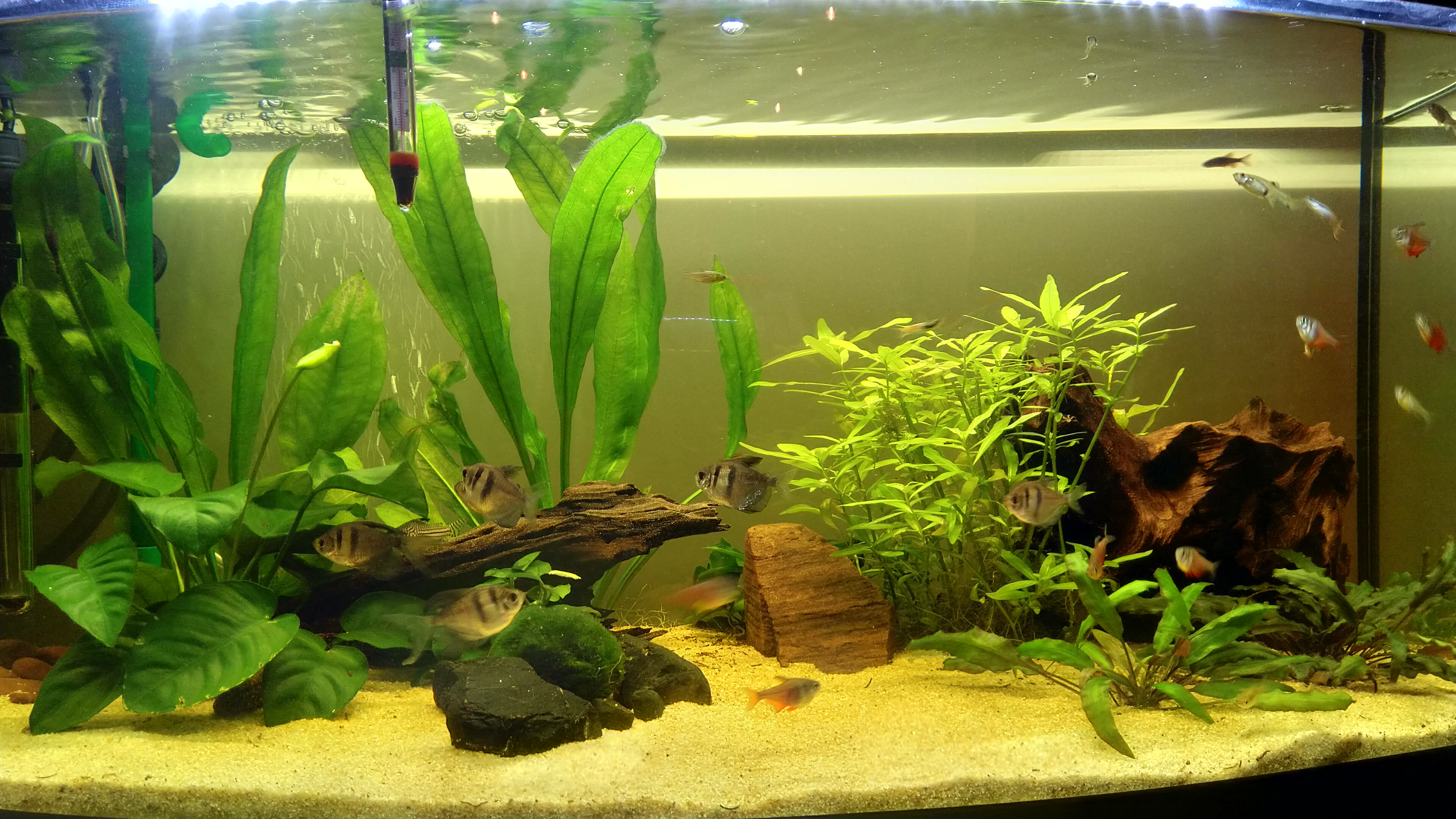 Corydoras trilineatus, Hyphessobrycon flammeus, Gymnocorymbus ternetzi, Danio margaritatus, Poecilia wingei, Neocaridina heteropoda var. Red, Neritina natalensis