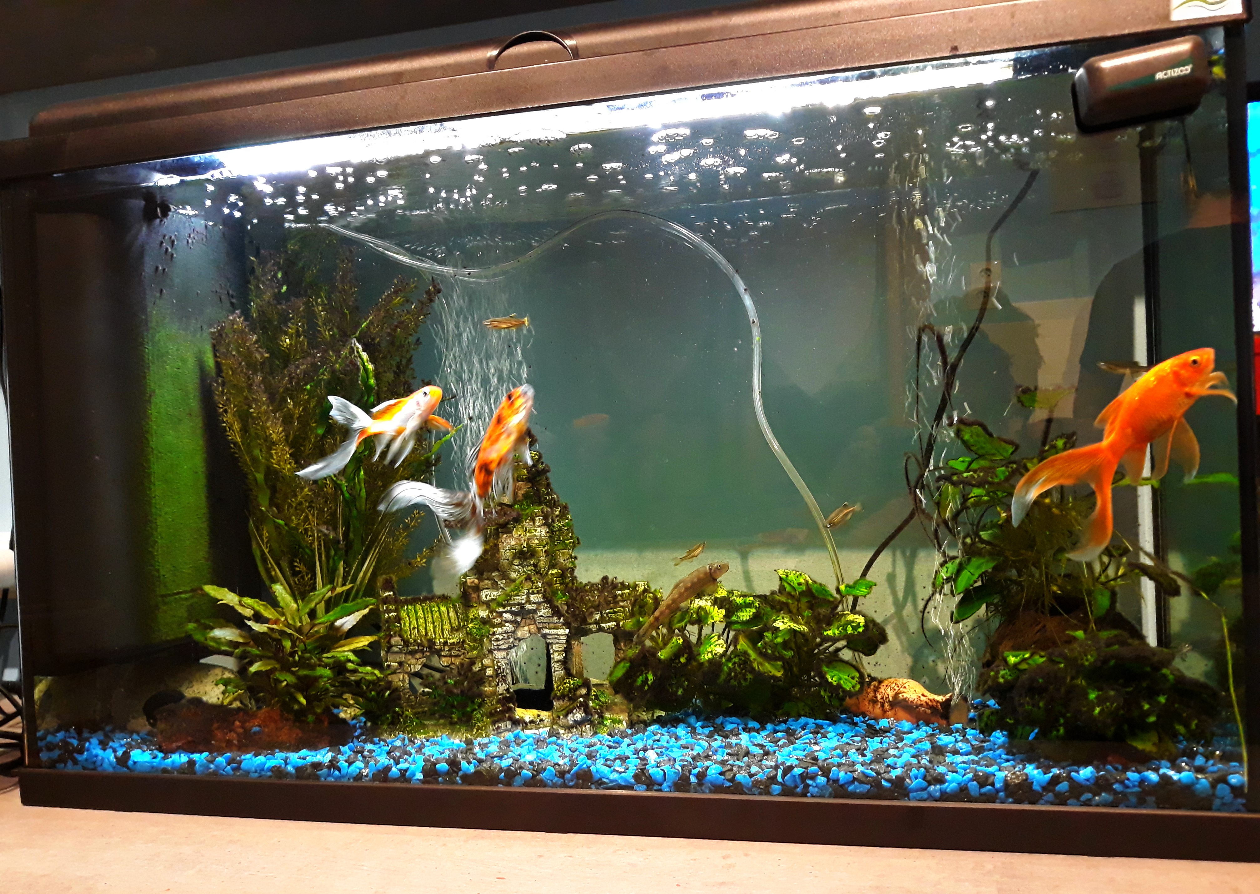 3 poissons rouge - 5 danios - 1 poisson laveur (race inconnue)