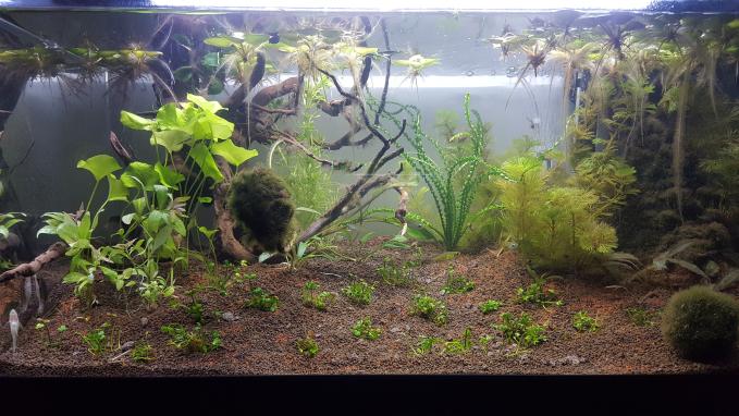 Premier Aquarium planté, peuplé de nano-poissons très sympathiques En eau depuis fin 2018, modifié plusieurs fois, plante gazonnante ajoutée dernièrement (24/10/19)