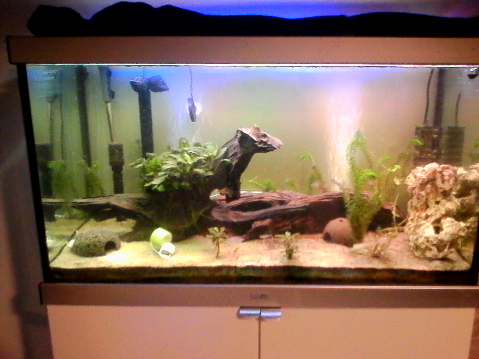 Sable de Loire sur subtsrat Racines de mangrove (x2) Roche artificielle (résine récifal) Anubias Barteri (un don du coup erreur géographique) Egeria densa