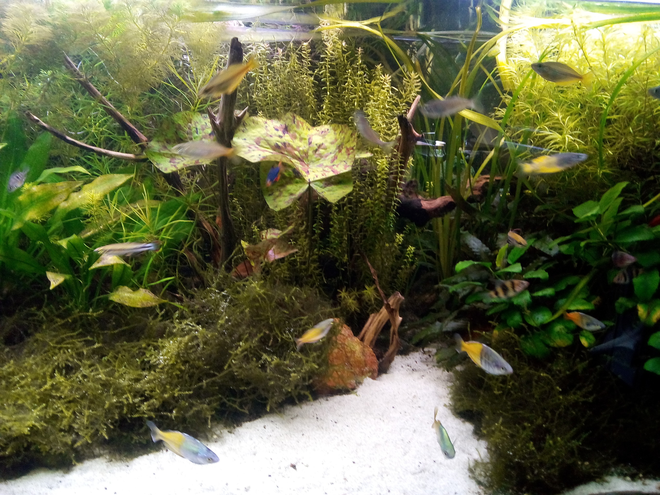 Echinodorus bleheri,pogostemon ,vallisneria gigantea,mousse de java,ceratophylum demersum,limnophila sessiliflora,anubias barteri,naja,rotala,nymphéa zynkeri,cryptocorine wenditi brune,fougère de Sumatra.