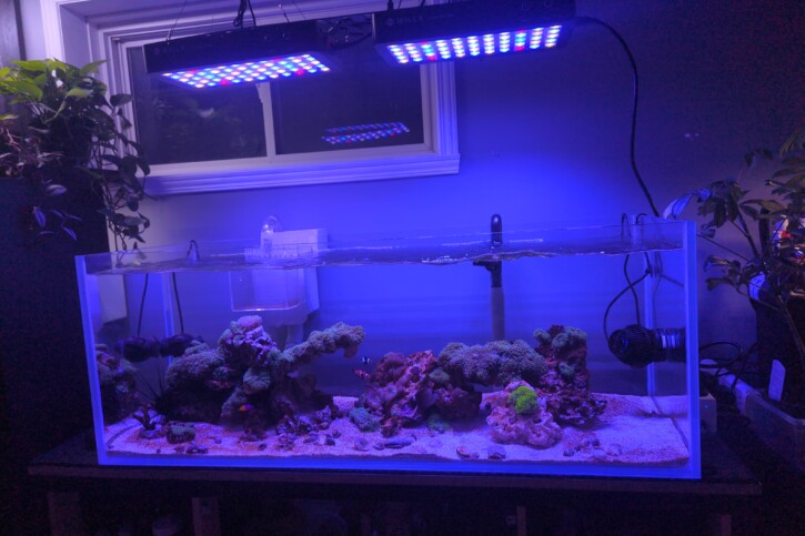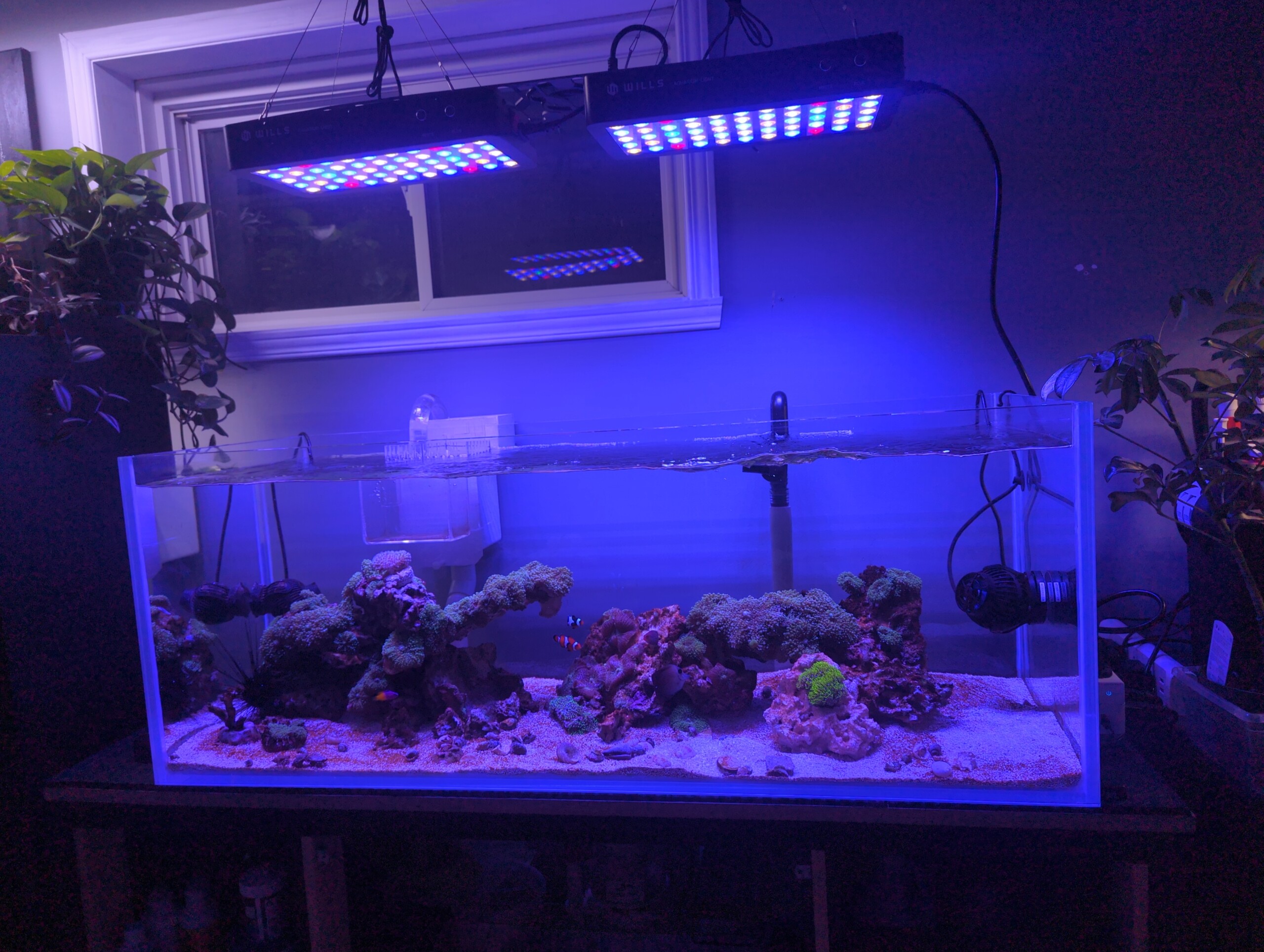 Couple de Clown ,1 scopas , crevette rouge ,grama royal ,mangeur de sable blanc ,Brigitte Muti coloré ,oursin noir , escargot et Bernard l hermite