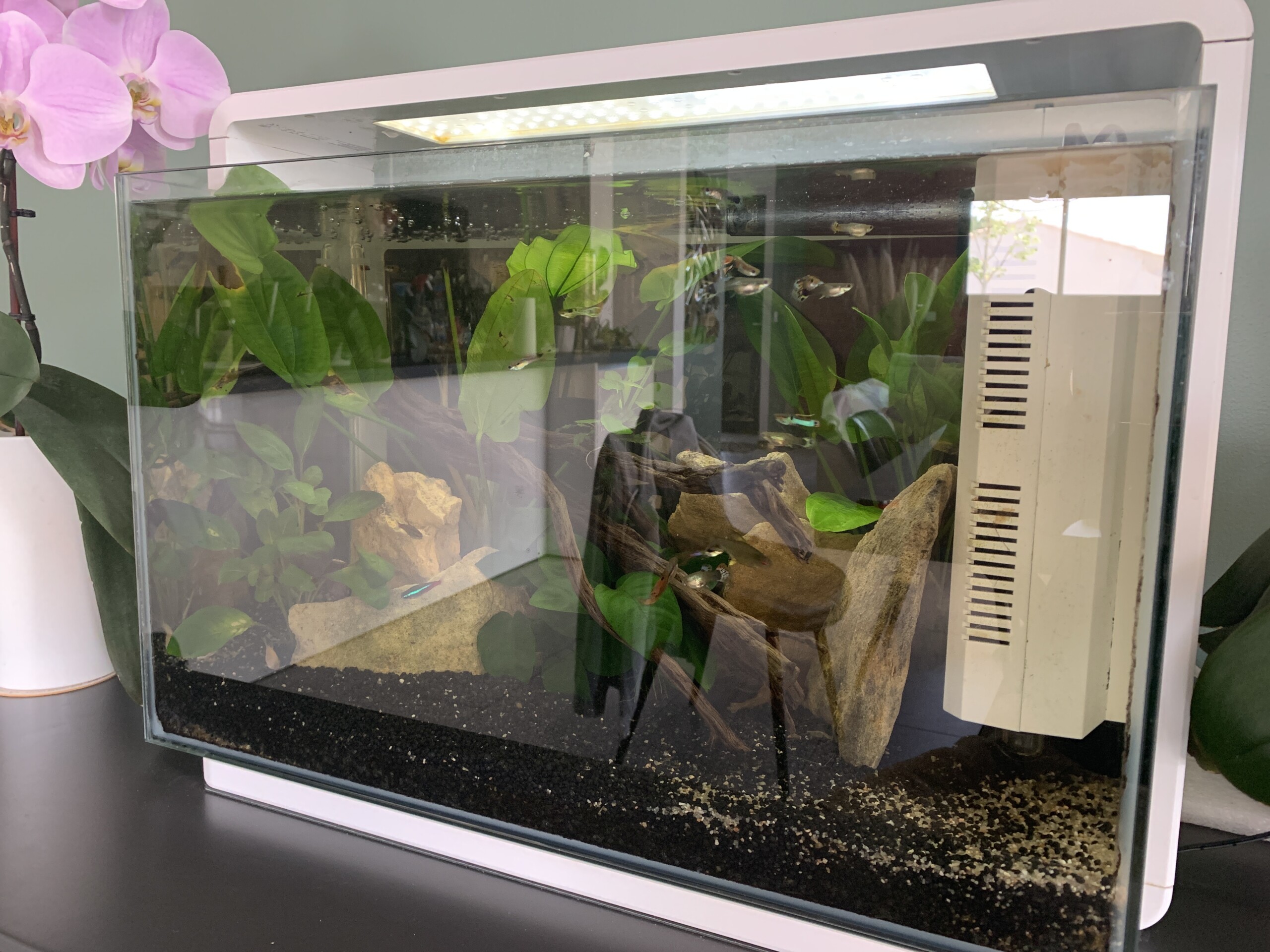 20 guppy 5 néons 2 corydoras 1 plaquo 1 combattant 3 barbus