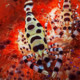 Cette crevette est jaune pâle tacheté d'ocelles noirs ou marron. Chaque tache est délimitée par une fine ligne blanche. Elles sont réparties tout le long du corps. Pouvant être sur le coté allant par paire ou sur la partie supérieur du cephalothorax, de l'abdomen et sur la queue.