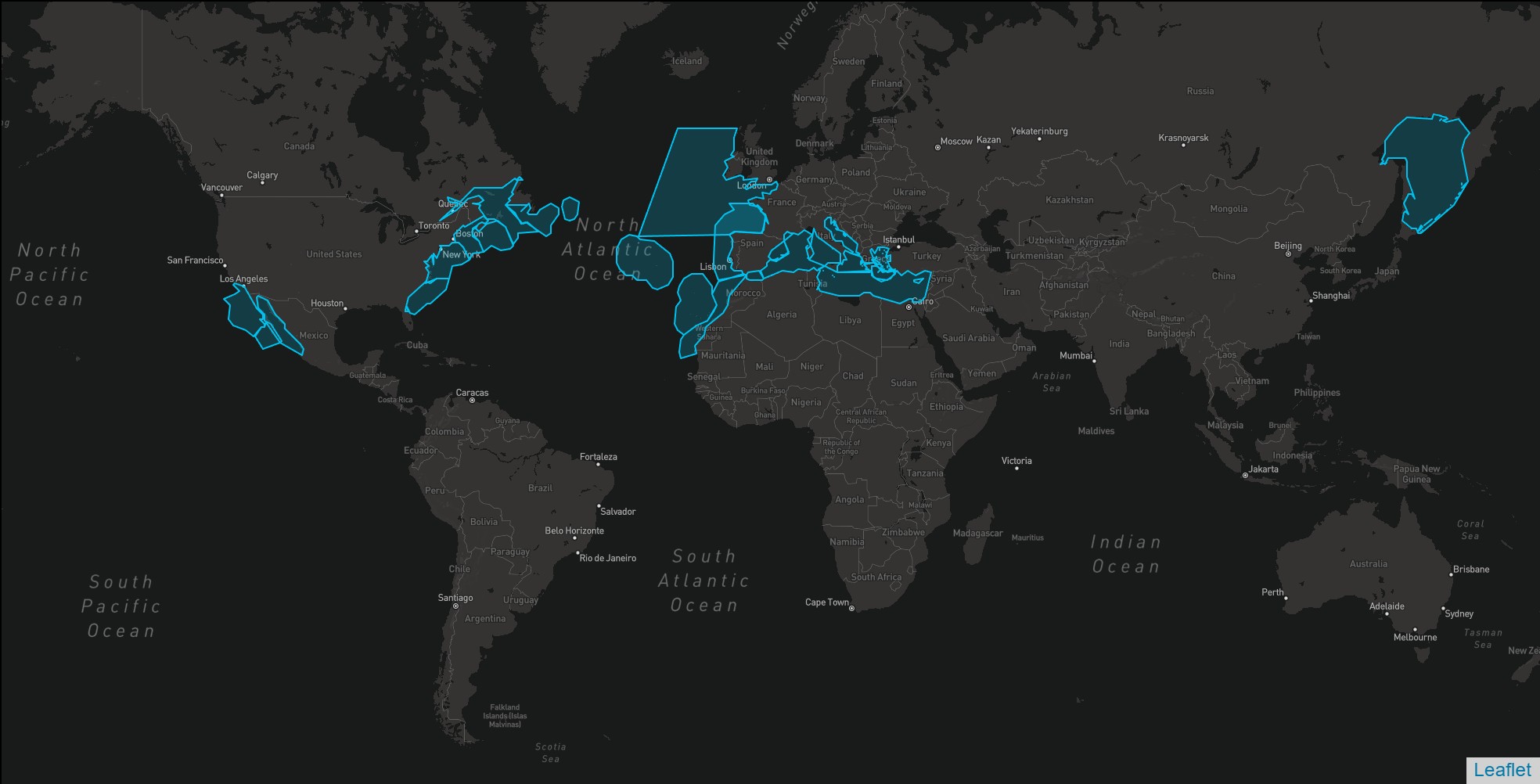 Le requin pèlerin se trouve généralement dans les zones riches en zooplancton. Ce sont souvent des endroits à fortes marées, autour des îles et dans les baies. On peut également le trouver dans des zones de plus de 1000 m de profondeur.