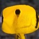 Juvéniles et adultes sont bicolores avec un patron majoritairement jaune et noir. Le corps est largement dominé par un jaune intense, clairsemé ça et là de petites rayures bi-directionnelles noires. Cette espèce possède un point noir légèrement excentré sur l'arrière et une bande noire au niveau de l'œil.